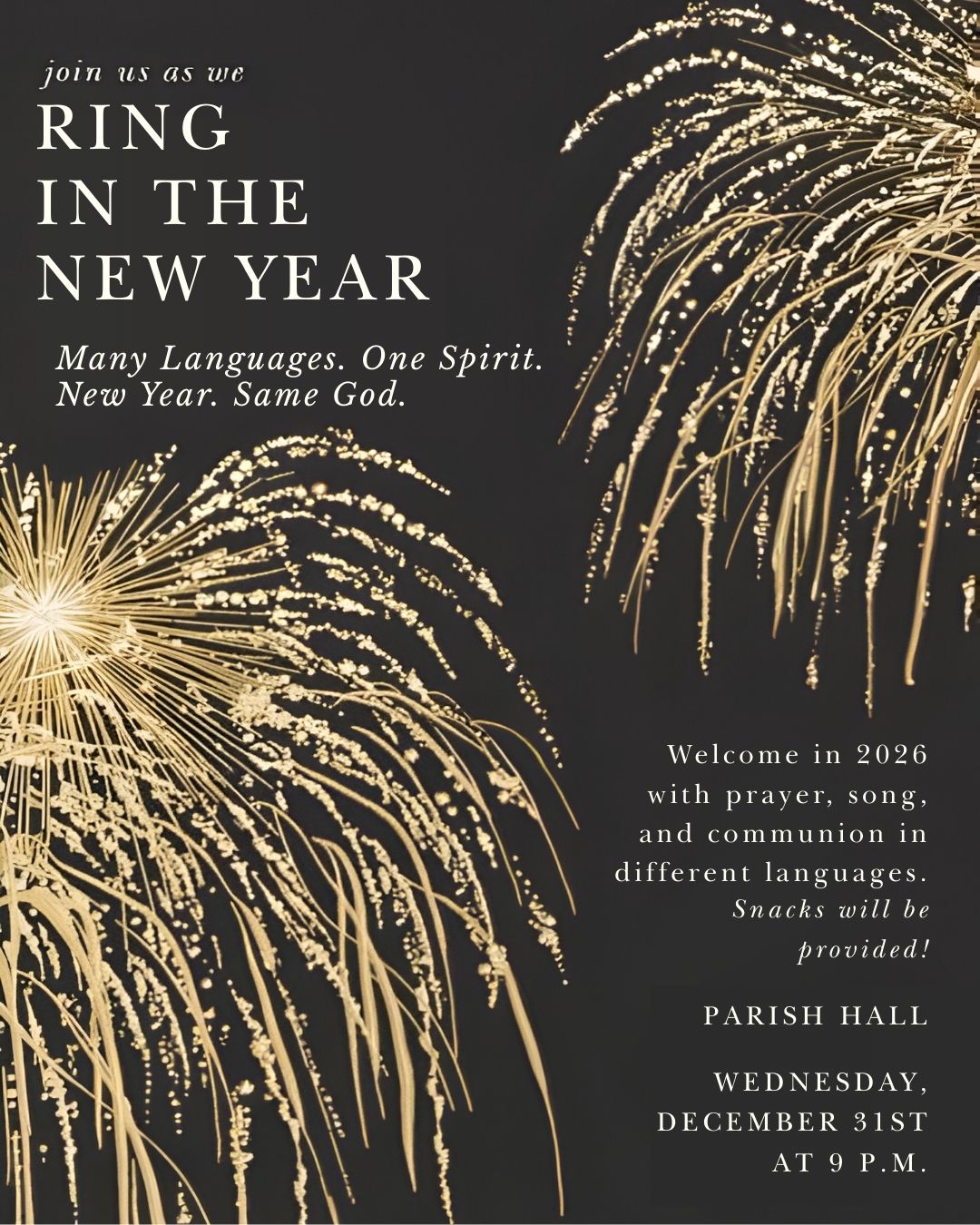 Join us as we welcome in 2026 with a Multicultural Worship Night as we gather to pray, sing, and share communion in different languages on New Year's Eve.